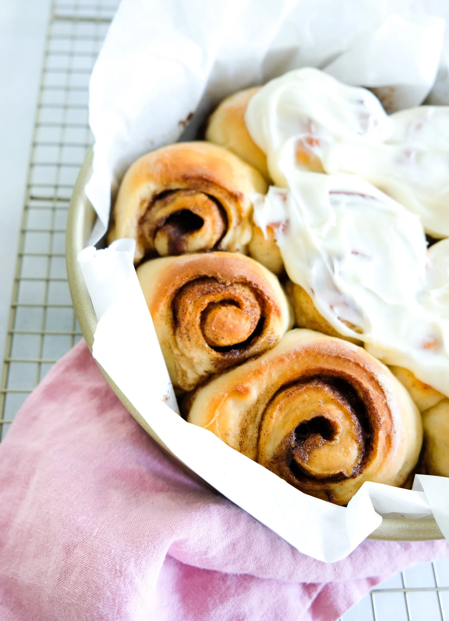 Parchment paper - Do you ever find it hard to get the first cinnamon roll out of the pan? This will solve that problem! Just simply lift all the rolls out using the paper and then use a spatula to serve them. :) It also makes washing the pan a breeze!