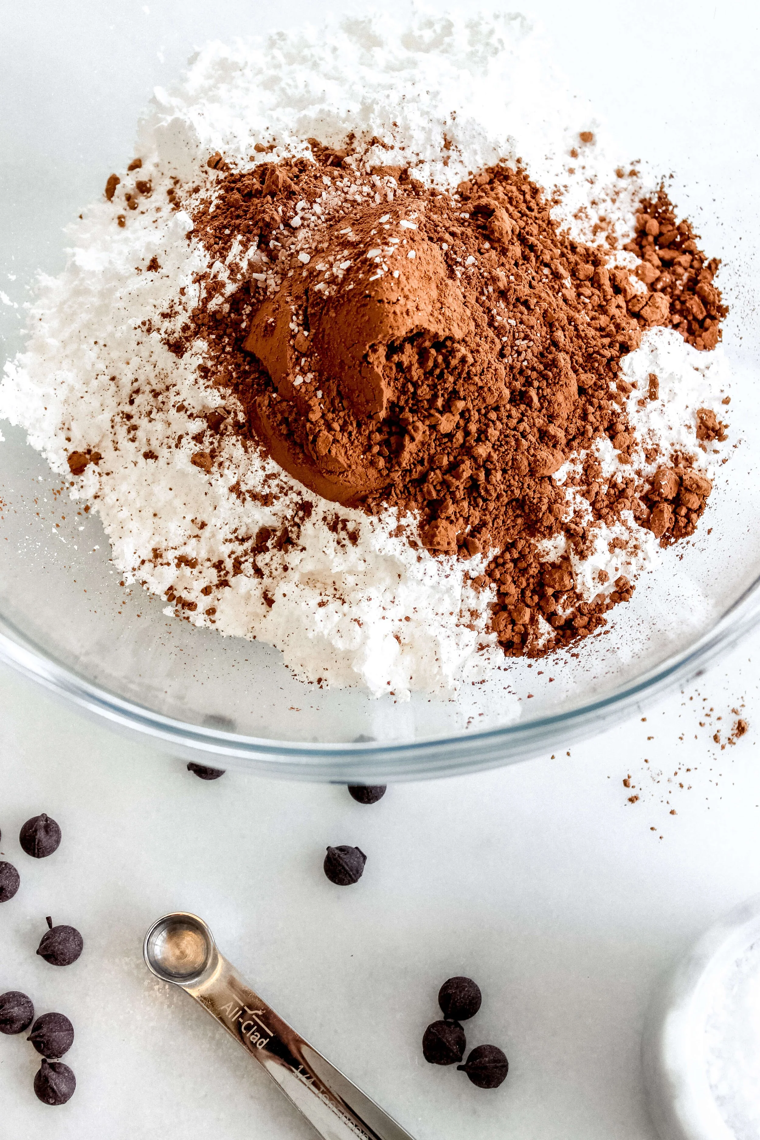 In a large bowl, whisk together the powdered sugar, cocoa, and salt.