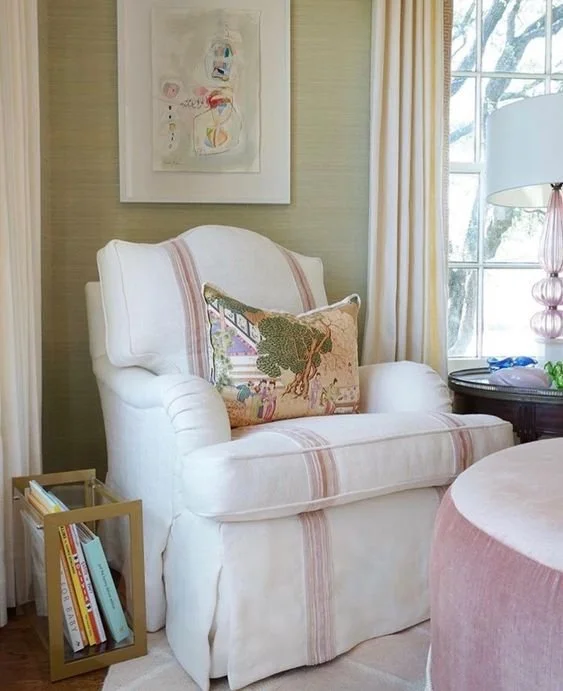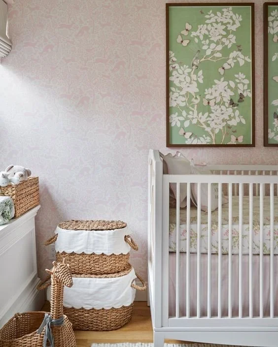 Thinking about our baby girl's nursery has definitely lifted my spirits during COVID-19. I am so so thankful to have an exciting project to work on and look forward too! I've found lots of inspiration on Pinterest & have put together my own inspiration board. One of my favorite interior design tips is to mix old with new! Since all of the furniture will be brand new, I'm going to add in some antique botanical prints, an Italian tole chandelier that I bought years ago, and blanc de chine lamp.