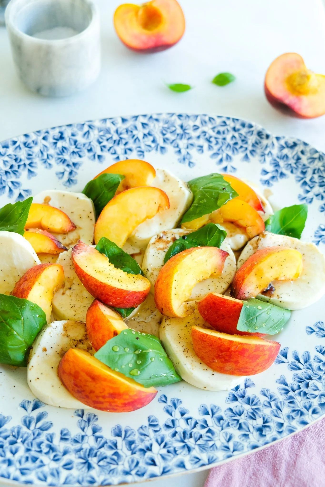 Is there anything better than a fresh juicy peach in the summer?! I've seriously been counting down the days until I could make this Peach Caprese Salad y'all! When I saw peaches in the grocery store last week, I knew this had to be my next recipe on the blog. :)